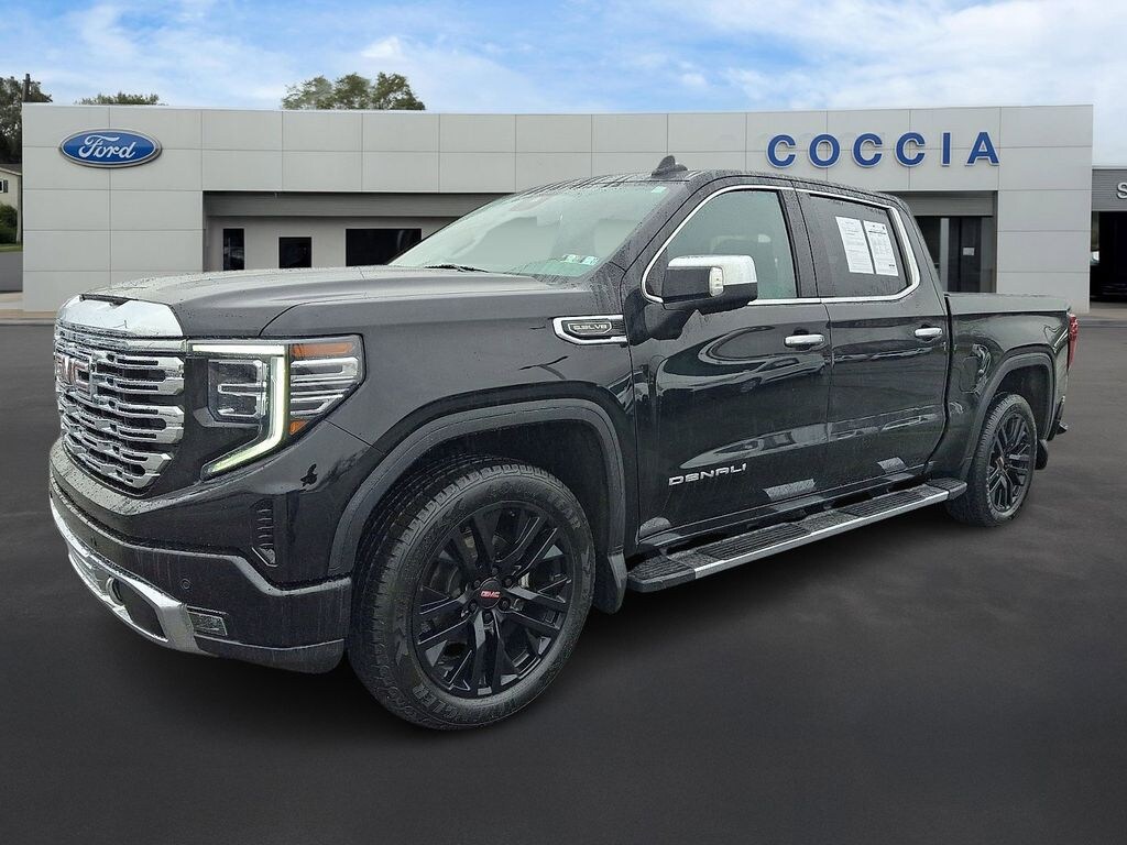 One Owner, Clean Vehicle History Report, Buy at Coccia and receive complimentary inspections for the life of your vehicle, Complimentary car wash with every service visit, Convenient Saturday service department hours available, Family owned and operated for over 35 years!, 10-Speed Automatic, 4WD, Jet Black Leather, 10-Way Power Driver Seat Adjuster w/Lumbar, 10-Way Power Passenger Seat Adjuster w/Lumbar, 120-Volt Bed Mounted Power Outlet, 120-Volt Instrument Panel Power Outlet, 170 Amp Alternator, 2 Charge/Data USB Ports Inside Center Console, 2 Type-C Charge-Only Rear USB Ports, 2 USB Ports, 3.23 Rear Axle Ratio, 7 Speakers, Adaptive suspension, Air Conditioning, Alloy wheels, AM/FM radio, Apple CarPlay/Android Auto, Auto High-beam Headlights, Auto-dimming door mirrors, Auto-dimming Rear-View mirror, Auto-Locking Rear Differential, Automatic Emergency Braking, Automatic temperature control, Auxiliary External Transmission Oil Cooler, Bed View Camera, Brake assist, Buckle to Drive, Bumpers: body-color, Cargo Tie-Downs (4) (LPO), Cat-Back Performance Exhaust (LPO), Chrome Header w/Signature Denali Chrome Grille, Chrome Recovery Hooks, Chrome Wheel To Wheel Assist Steps, Color-Keyed Carpeting Floor Covering, Compass, Console-Mounted Safe (LPO), Deep-Tinted Glass, Delay-off headlights, Denali Premium Suspension w/Adaptive Ride Control, Driver door bin, Driver Memory, Driver vanity mirror, Electric Rear-Window Defogger, Electrical Steering Column Lock, Electronic Stability Control, Floor-Mounted Center Console, Following Distance Indicator, Forge Perforated Leather Seat Trim, Forward Collision Alert, Front & Rear Black Molded Splash Guards (LPO), Front Bucket Seats, Front Center Armrest, Front dual zone A/C, Front fog lights, Front Pedestrian Braking, Front Prem Floor Liners w/Removable Carpet Insert, Front Rainsensing Wipers, Front reading lights, Fully automatic headlights, Garage door transmitter, Genuine wood console insert, Genuine wood dashboard insert, Genuine wood door panel insert, GMC Connected Access Capable, HD Surround Vision, Heated 2nd Row Outboard Seats, Heated door mirrors, Heated Driver & Front Outboard Passenger Seating, Heated front seats, Heated rear seats, Heated steering wheel, Heavy-Duty Air Filter, Hill Descent Control, Hitch Guidance, Hitch Guidance w/Hitch View, Illuminated entry, In-Vehicle Trailering App, Integrated Trailer Brake Controller, IntelliBeam Automatic High Beam On/Off, Keyless Open & Start, Lane Keep Assist w/Lane Departure Warning, LED Cargo Area Lighting, Memory seat, Navigation System, OnStar & GMC Connected Services Capable, Outside temperature display, Overhead console, Panic alarm, Passenger door bin, Passenger vanity mirror, Perimeter Lighting, Power Door Locks, Power door mirrors, Power driver seat, Power Front Passenger Windows w/Express Up/Down, Power Front Windows w/Driver Express Up/Down, Power passenger seat, Power Rake & Telescoping Steering Column, Power Rear Windows w/Express Down, Power Sliding Rear Window w/Rear Defogger, Power steering, Power Sunroof, Power windows, Preferred Equipment Group 5SA, Premium audio system: GMC Infotainment System, Premium Bose 7-Speaker Sound System, Push Button Start, Radio data system, Radio: Premium GMC Infotainment Audio System, Rain sensing wipers, Rear Cross Traffic Braking, Rear Pedestrian Detection, Rear Prem Floor Liners w/Removable Carpet Insert, Rear reading lights, Rear seat center armrest, Rear step bumper, Rear Underseat Storage (LPO), Rear Wheelhouse Li